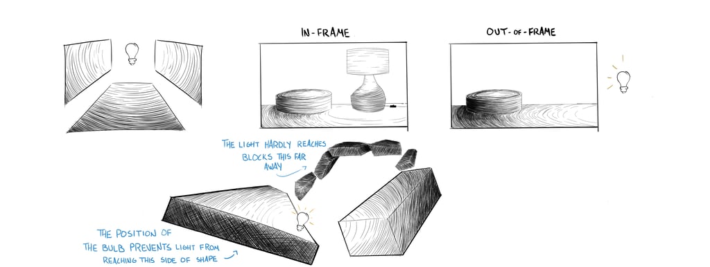 The position, brightness, and distance of the light source are all important determining factors in how the objects around the light will appear/be lit.