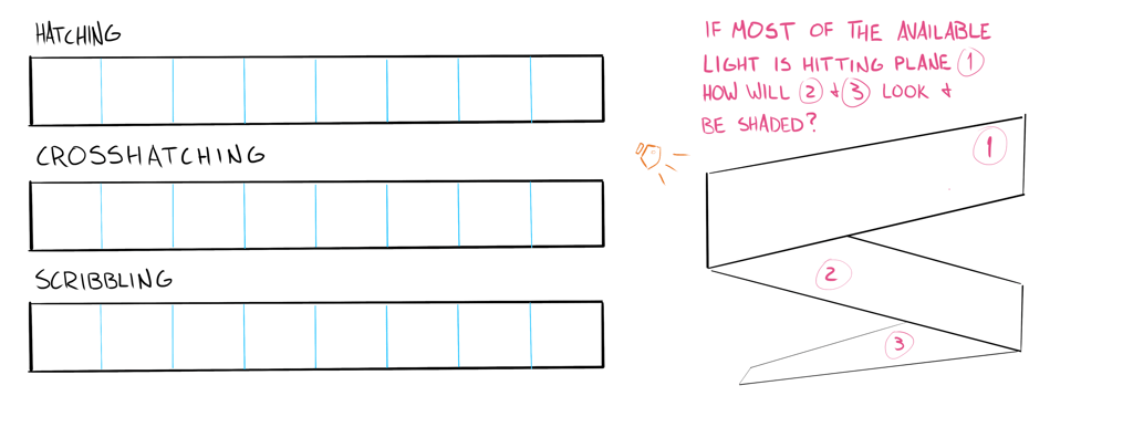In essence, we make these gradients by creating line strokes that intersect, layer, and blend together in a way that creates the illusion of light and darkness.