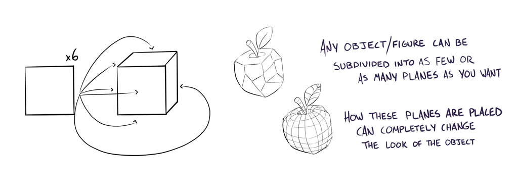 I'm very briefly introducing this concept so that you have it in the back of your mind. Understanding how just one plane rotates and morphs in 3D space will make it way easier to then move on to cubes, apples, and eventually, complex life forms.