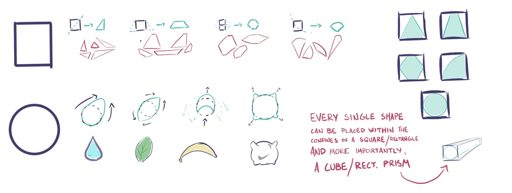 Repeat after me: everything starts simple. I want you to get used to imagining complex shapes framed within rectangles and/or ellipses. The key to becoming a great draftsman is knowing how to start small and then work your way up.