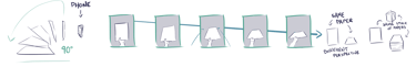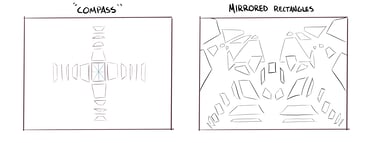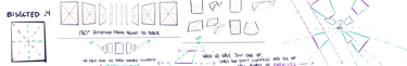 Understand how a piece of paper looks from any rotation? Let's put it to the test. Using the ghost method from the previous chapter, take a page & make a "compass" of rectangles like the one below. Add guidelines.