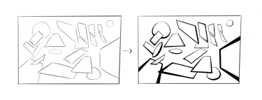Use line weight to imply which shapes are closer to the viewer and which ones are really far into the canvas.