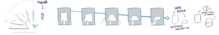 Made up of four straight lines, it is by far the best shape to try to understand perspective with. Have your phone nearby? Wherever it is, grab it and open up your camera. Next, hold out a flat piece of paper and take a picture of it straight on. Now, tilt the paper forward a little and take another picture. Repeat at least 3 more times.